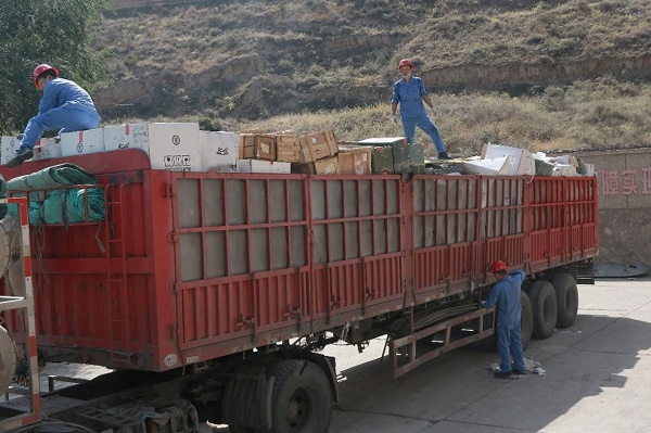 首批数万件电子元件、铅酸电池等退役报废物资交接现场
