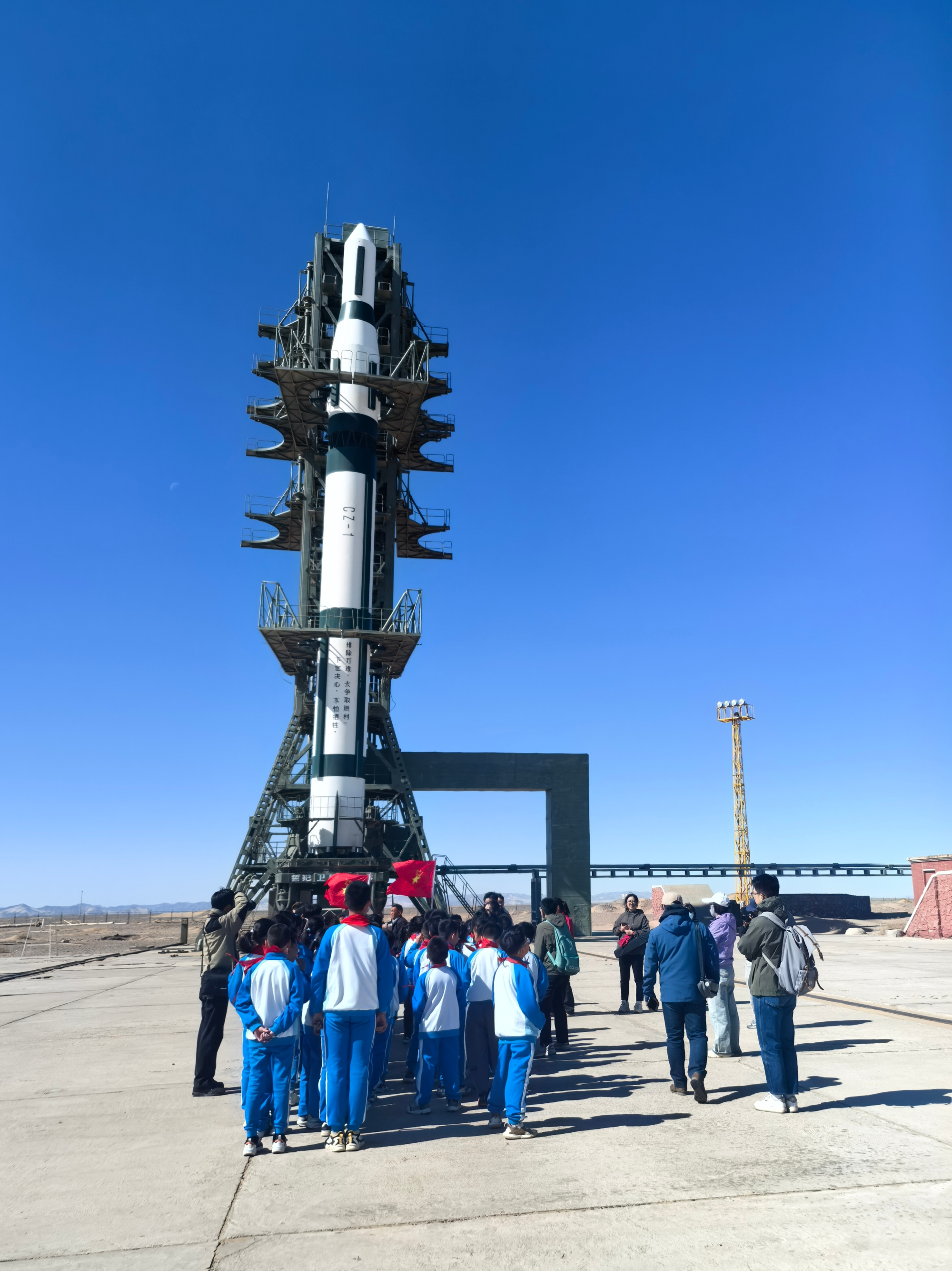 作为集团公司首批爱国主义教育基地,东方红卫星发射场内处处镌刻着深沉的记忆。“安下心,扎下根,戈壁滩上献青春”“死就死在阵地上,埋就埋在导弹旁”“团结起来争取更大的胜利”……这些朴素而赤诚的口号不再是简单的标语,它们在参观者的心里默默流淌。巍峨的发射塔架泛着金属特有的冷光;138地下控制室里陈列如昨,仿佛看得到第一代航天人“指令此地发,捷报普天传”的喜悦与激昂;历史展览馆里,研学少年的眼睛亮得能映出玻璃柜里的航天勋章。